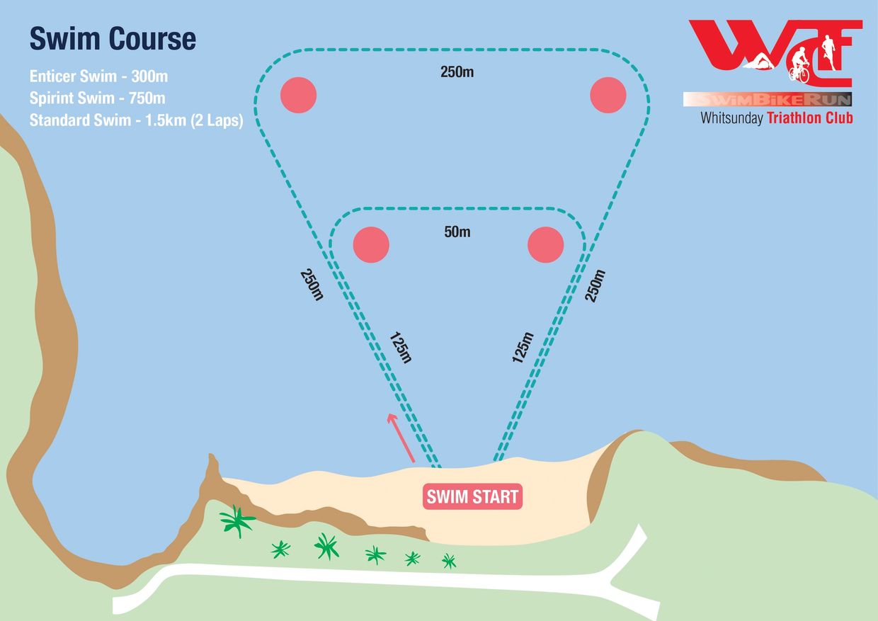 Athletes will be required to complete the triangular course travelling in a clockwise direction starting and finishing at the Airlie Beach near the lagoon. Athletes will head and around the first turn around buoy, then swimming along the backside before making another turn at the buoy to head back to the beach. Airlie Bay offers a stunning tropical and balmy swim.